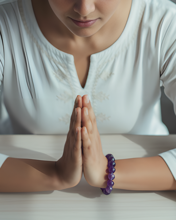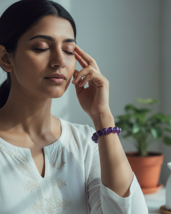• Wear it as a bracelet on the left wrist — the receiving side of the body — to absorb calming energy and invite emotional balance into your aura.