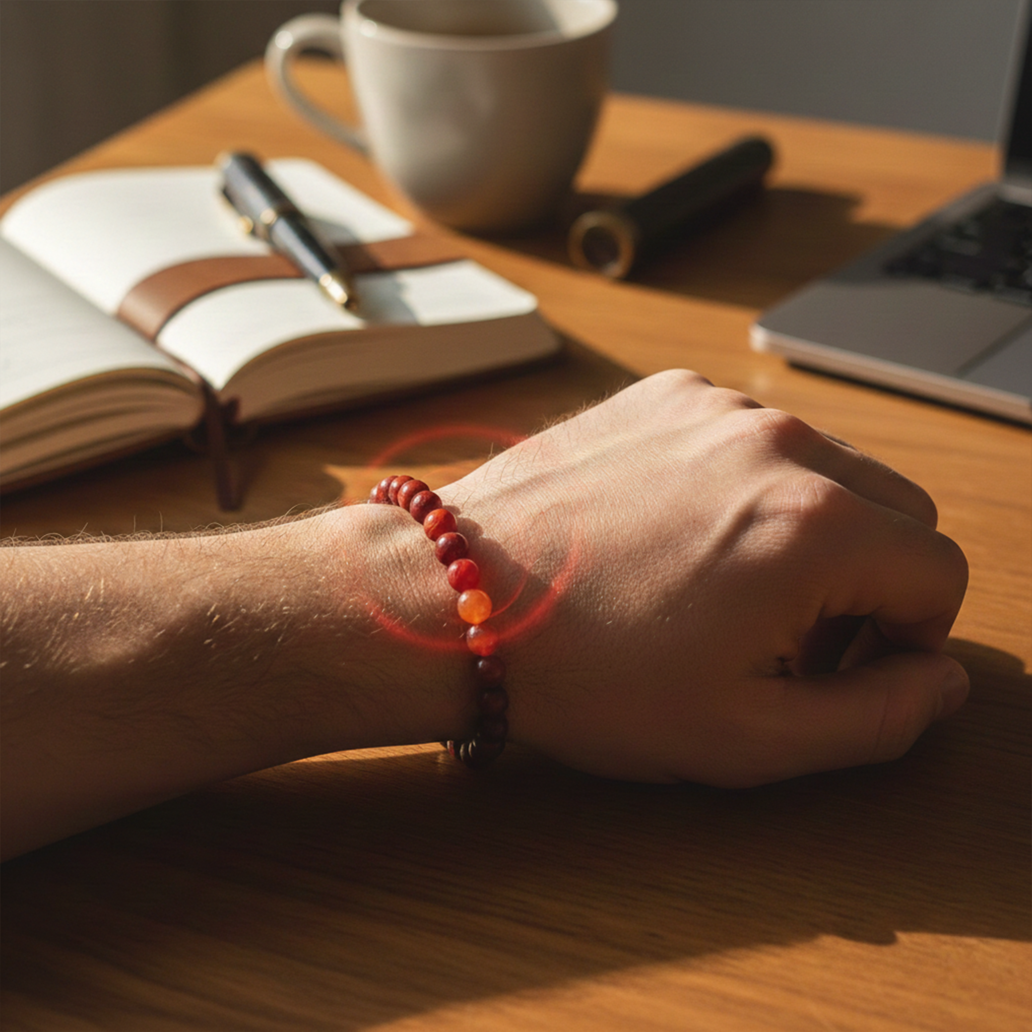 Crafted with natural Carnelian and Red Jasper, this bracelet boosts vitality, confidence, and strength. Carnelian enhances motivation and energy, while Red Jasper supports endurance and grounding. Hand-selected, energized, and presented in premium packaging—ideal for daily wear or gifting.
