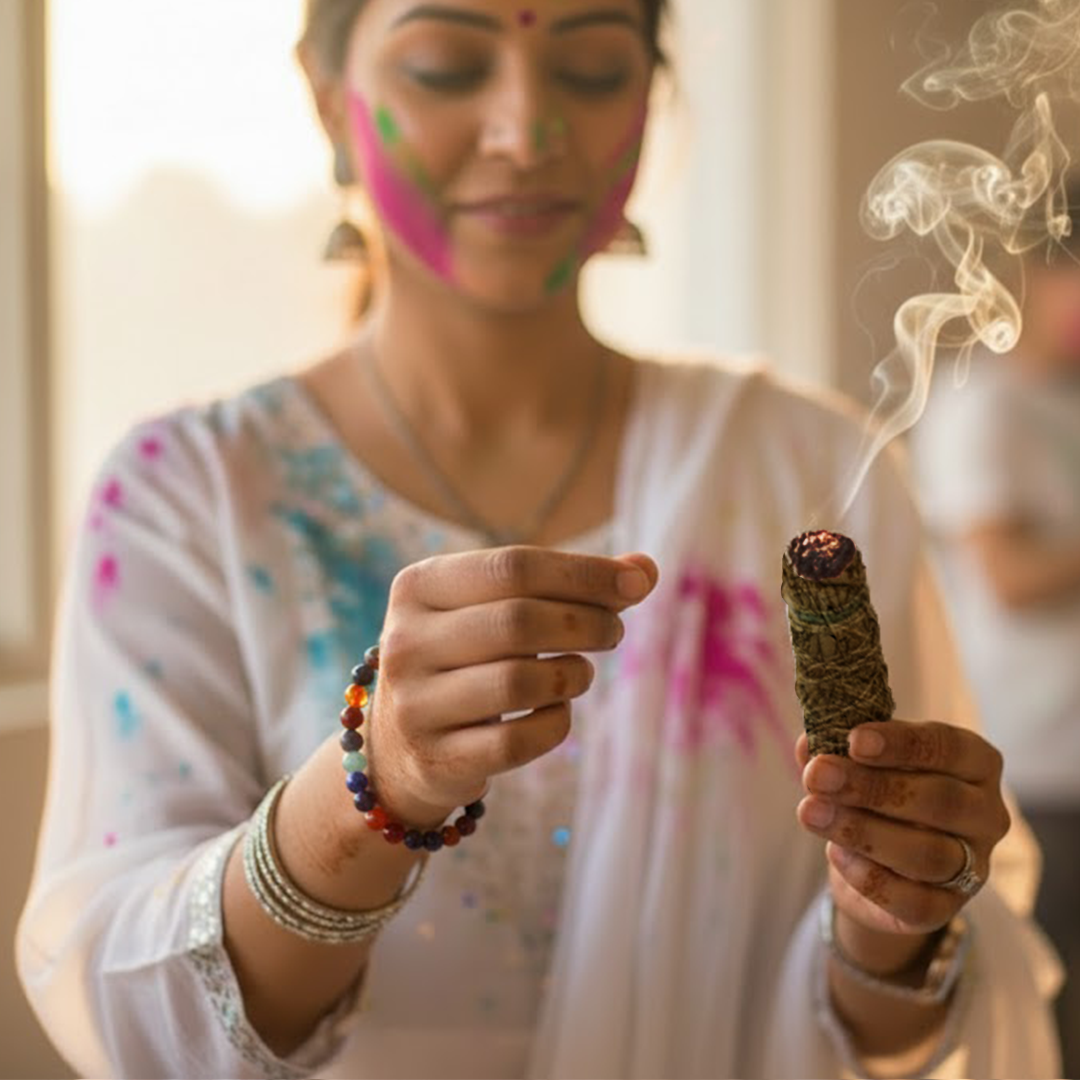 This kit is created to restore harmony within your mind, body, and soul. The 7 Chakra bracelet helps balance all energy centers, while Chandan Sage calms the mind and enhances spiritual connection. Perfect for Holi — a festival of colors — this kit aligns your inner colors beautifully.