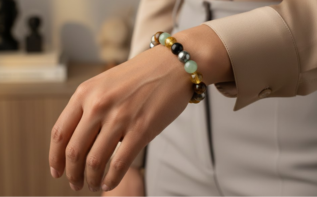 The Money Multiplier Bracelet combines Pyrite, Tiger’s Eye, Black Tourmaline, Citrine, and Green Aventurine to attract wealth, protect finances, and boost opportunities. Handcrafted, energetically blessed, and delivered in premium packaging—ideal for daily wear or gifting.