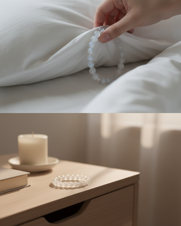 • When not wearing, keep it under your pillow or on your bedside table, allowing the bracelet to absorb and radiate serene, moonlit vibrations through the night.